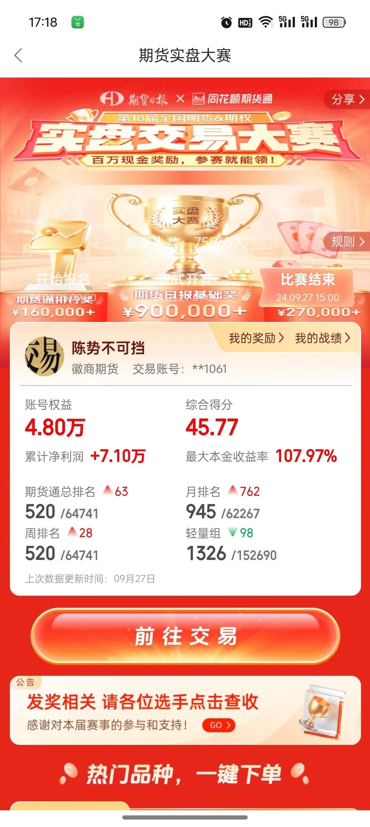 #社区牛人计划# 期货交易的四种结果:小亏、小赢、大亏、大赢。交易盈利的秘诀:绝不大亏,抓住大赢,小亏小赢随意。我的趋势交易系统就是基于上面盈利的核心原理建立的,完全按照交易系统信号开仓,开仓后合理找好止损点,遇上震荡小亏小赢随意,方向做对了有盈利就一直拿住直到达到止盈点,扣除震荡的损失成本下来就能整体盈利,耐心坚持滴水穿石,让时间成就大赢小亏总体大盈利累积复利的奇迹!