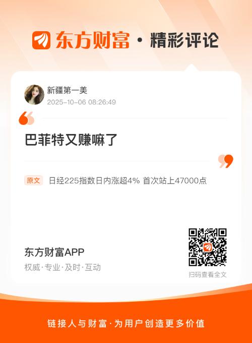 巴菲特又赚嘛了 我在《日经225指数日内涨超4% 首次站上47000点》的评论获得了大家的关注。