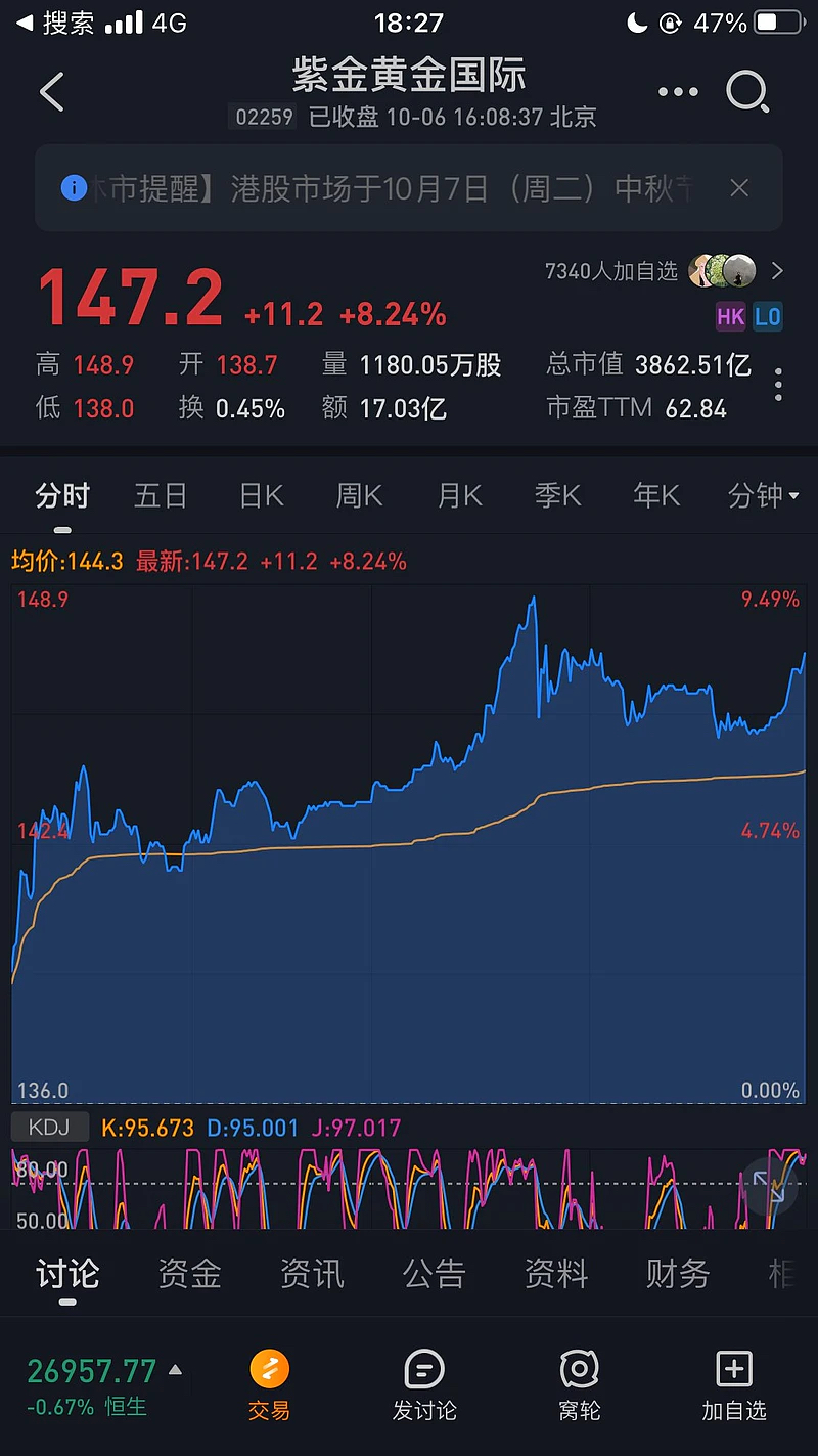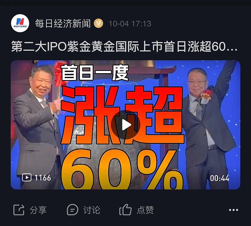 紫金黄金国际本次集资额近250亿港币,公开发售部分获得超过190倍的认购,认购规模超4800亿港币,发行价格确定为71.59港元/股。紫金黄金国际该募资规模成为继宁德时代后今年港股第二大IPO项目。$XD紫金矿(SH601899)$ $紫金黄金国际(02259)$ $特变电工(SH600089)$ 紫金黄金国际港股上市四天翻倍。
