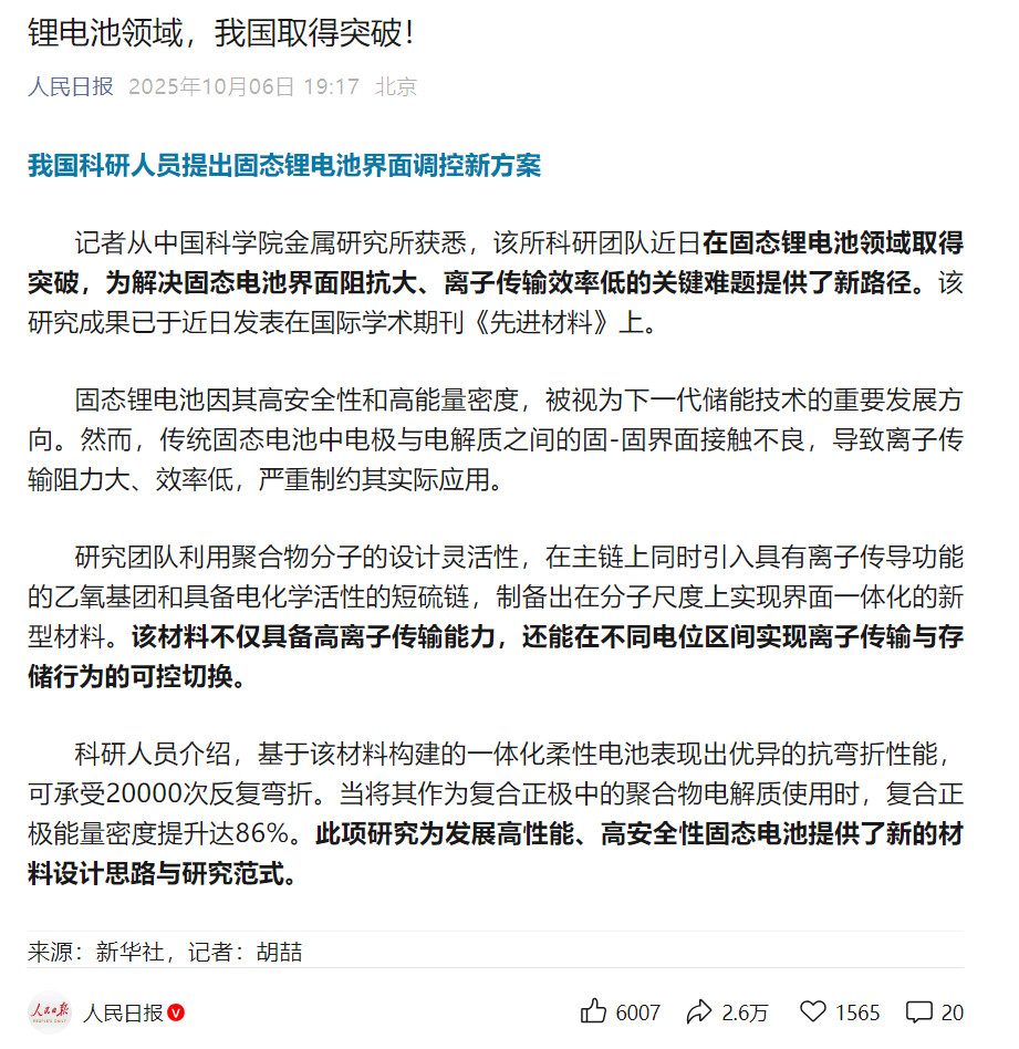 人民日报这个消息对10月份固态电池的走势是否有帮助?