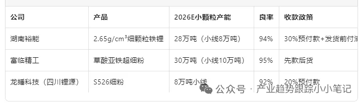 2026年10月,100Ah、50Ah小方形“好产能”继续被已被长单提前锁定:上游湖南裕能、富临精工——细粉价格抬升 先款。