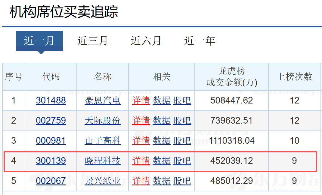 最近不少股民朋友都在问晓程科技,这家公司本月龙虎榜上榜9次,东方财富龙虎榜排名第4。