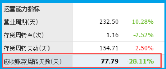 继续深挖,财官在应收账款周转天数上找到了第一个线索:78天,比去年同期缩短了28%。