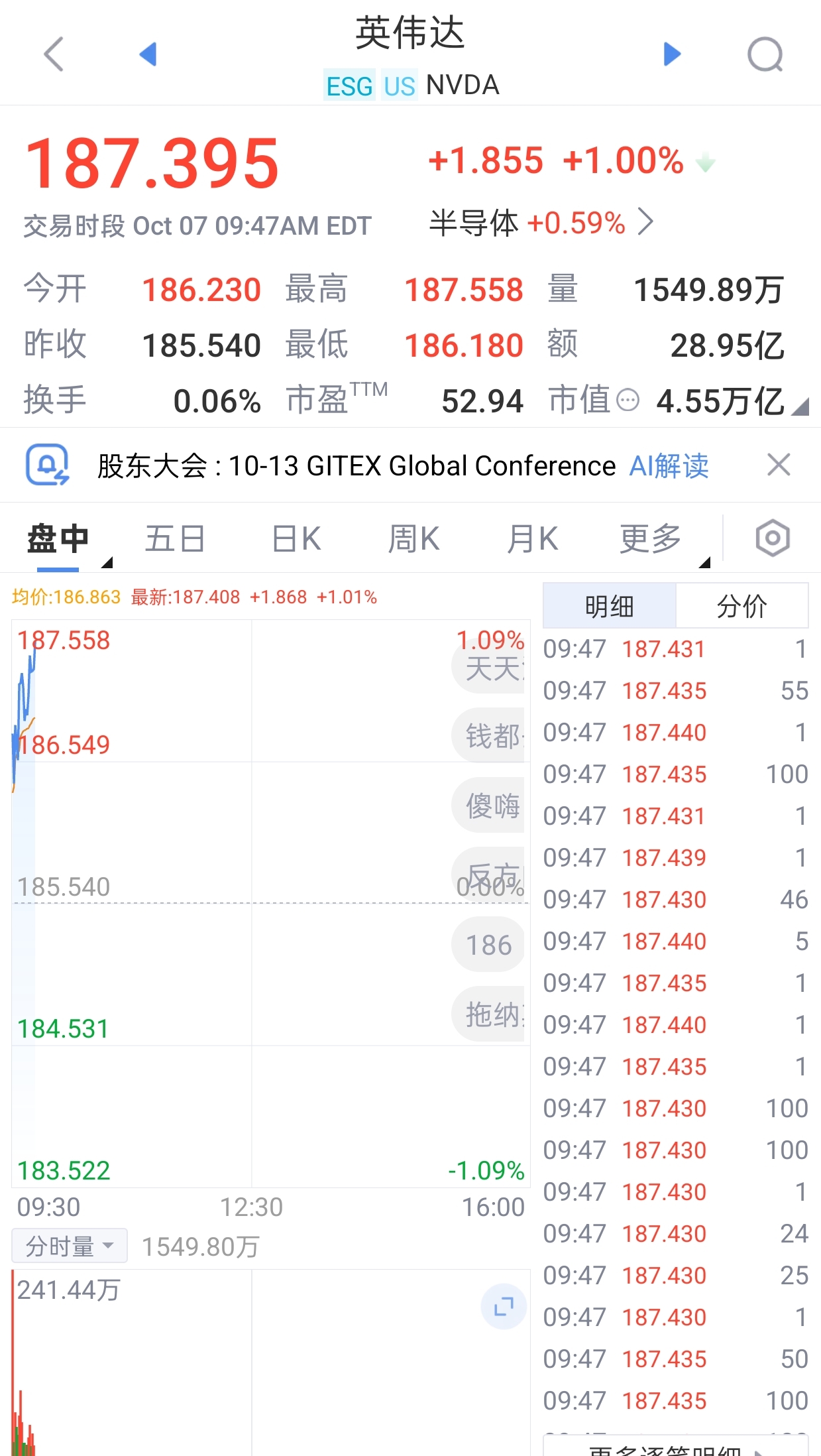 美股直播客今天英特尔走势也不错,小幅高开后就迅速上涨,今天两个英支撑着纳斯达克指
