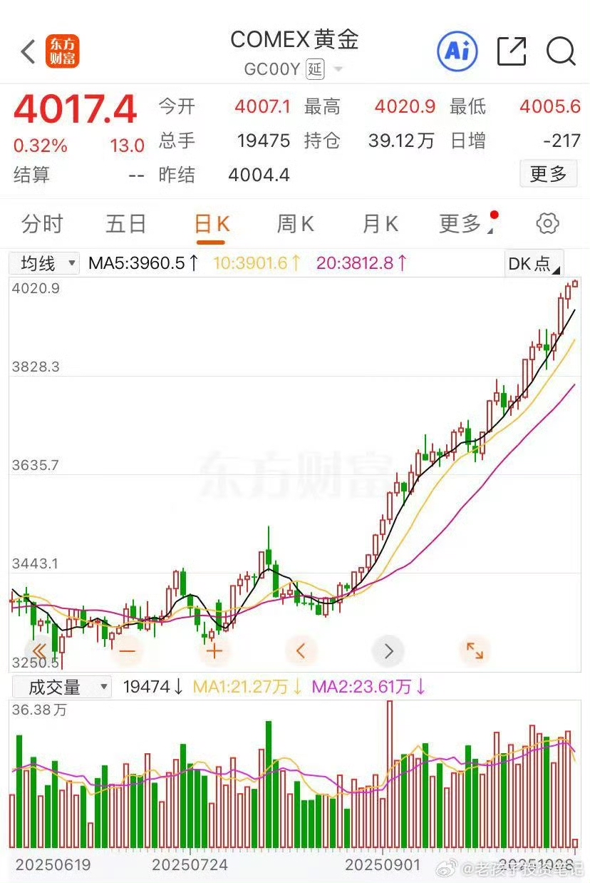 纽约金破4000了【现货黄金首次站上3995美元关口】现货黄金日内涨0.5%,逼