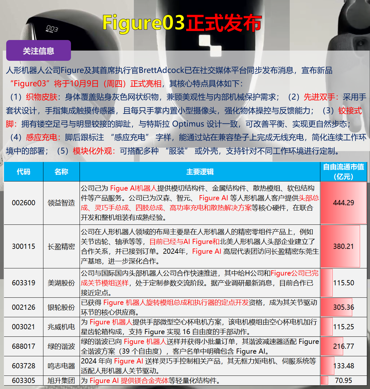 人形机器人公司Figure及其首席执行官BrettAdcock已在社交媒体平台同步发布消息,宣布新品“Figure03”将于10月9日(周四)正式亮相,其核心特点具体如下: