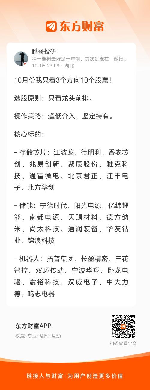 10月份我只看3个方向10个股票!