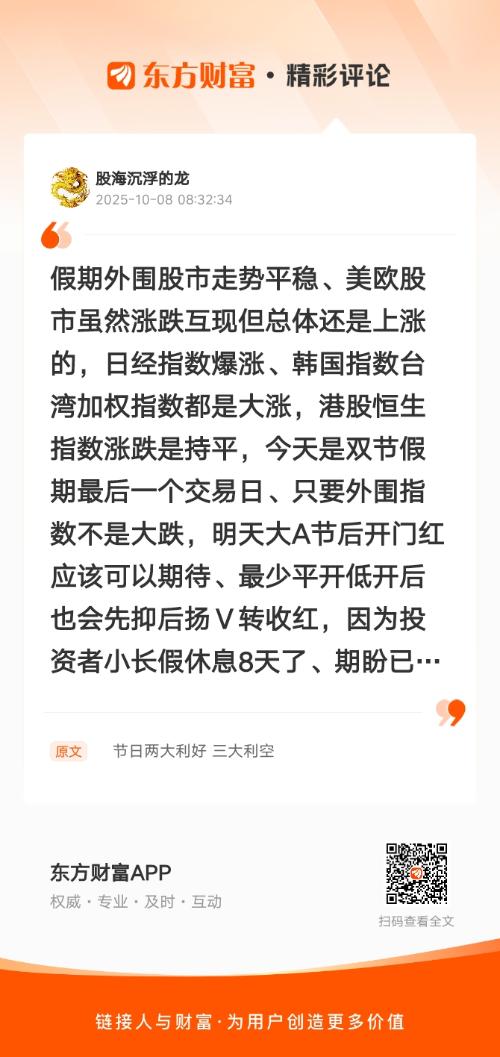 今天是节前最后一天,假期余额已经不多,明天,A股市场将重新敞开大门,迎接投资者的检阅。在全球资本市场这个永不落幕的舞台上,美股再创历史新高,日经指数一路高歌猛进,港股牛头蛇尾,节后第一天大涨,随后两天跌回去了,今天将是关键,如果今天港股下跌,明天A股的"开门红"盛宴恐怕就要蒙上一层阴影了。