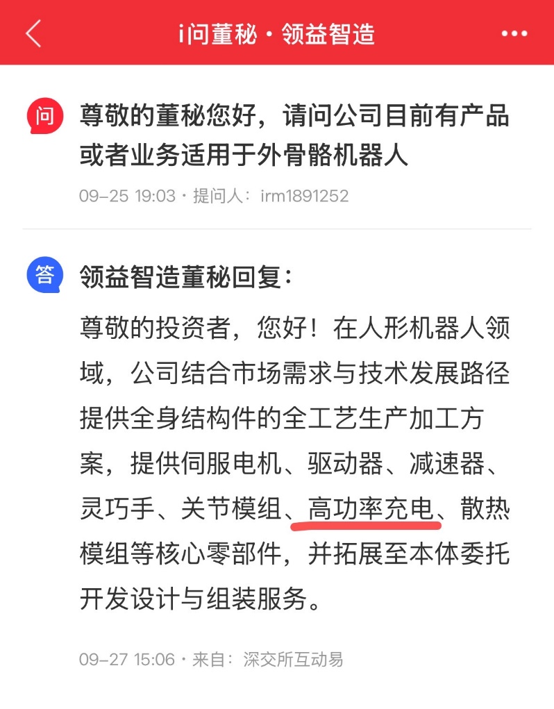 足部感应充电专属供应:Figure 03 曝光的足部感应充电功能核心组件由领益智造独家提供,该方案完美适配机器人工业场景连续作业需求,可通过无线充电简化部署流程。公司在投资者互动平台明确表示,已具备人形机器人高功率充电解决方案的研发与供应能力,可提供从充电模组到系统集成的全流程支持。