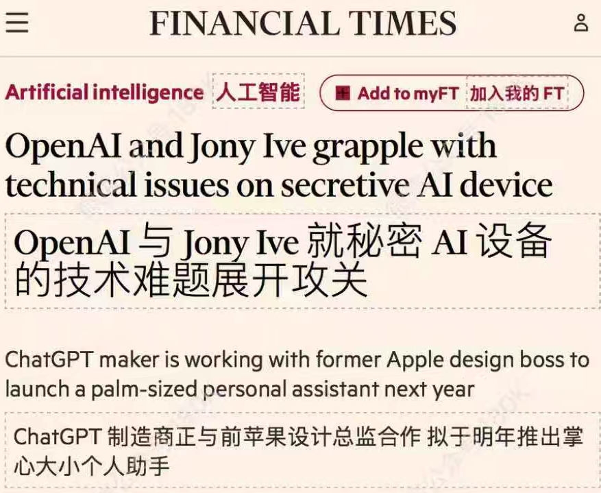 事件 4:OpenAI 联手前苹果设计总监,研发掌心大小 AI 消费电子