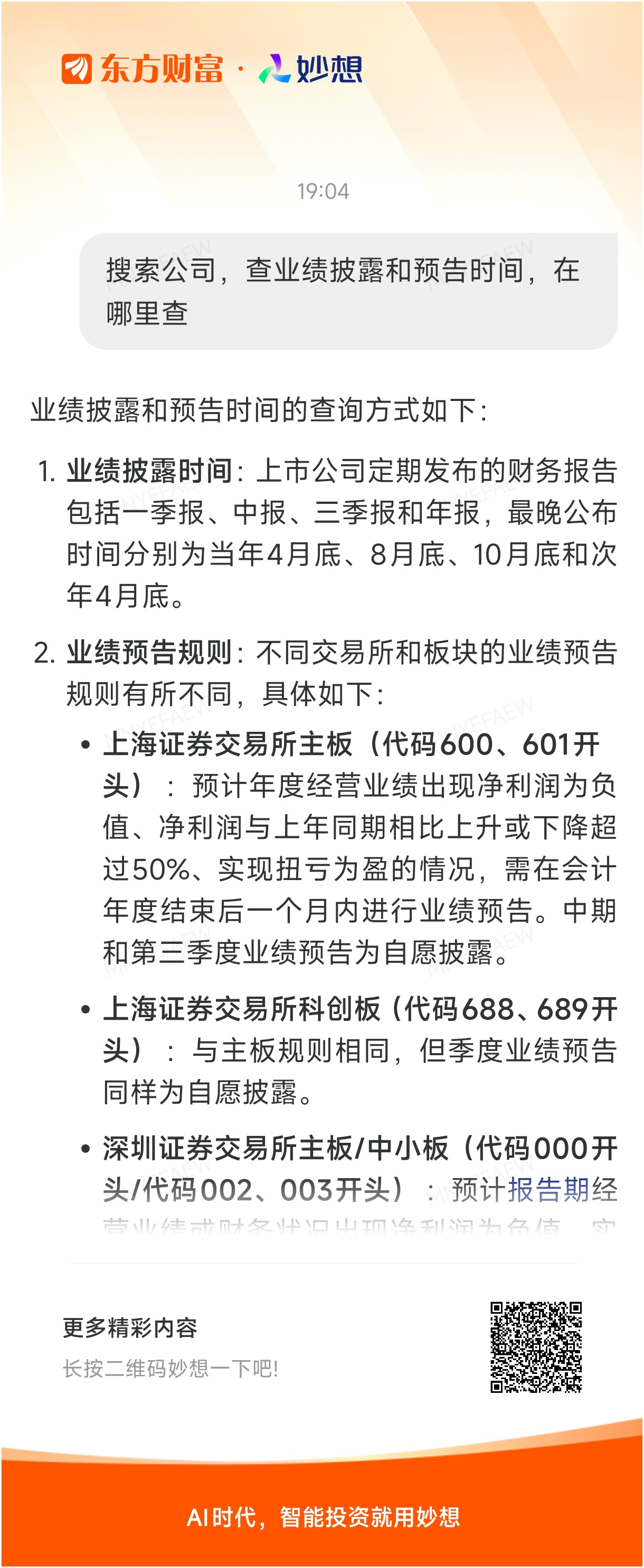 #@妙想,你怎么看?# 妙想一下:搜索公司,查业绩披露和预告时间,在哪里查