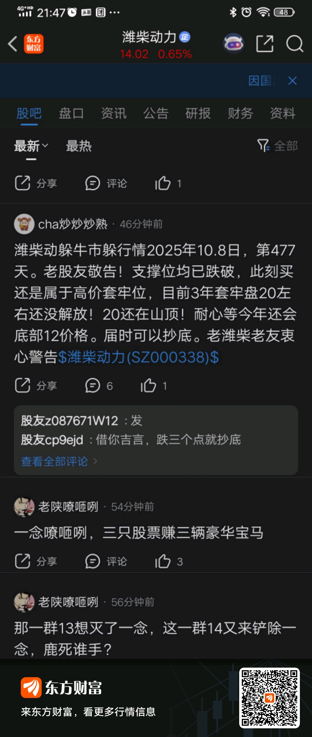 温馨提示: 1.根据《证券法》规定,禁止编造、传播虚假信息或者误导性信息,扰乱证券市场;2.用户在本社区发表的所有资料、言论等仅代表个人观点,与本网站立场无关,不对您构成任何投资建议。用户应基于自己的独立判断,自行决定证券投资并承担相应风险。《东方财富社区管理规定》