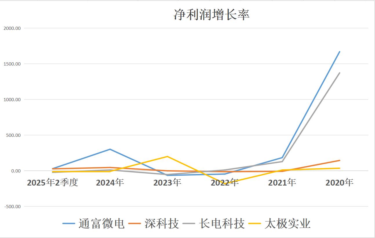 主要是太极实业在2022年净利润出现了大幅下降,拖了后腿。而通富和长电则是2020年净利润巨幅增长占了便宜。深科技则相对其他三家公司而言,利润表现更为平稳,大起大落更小。