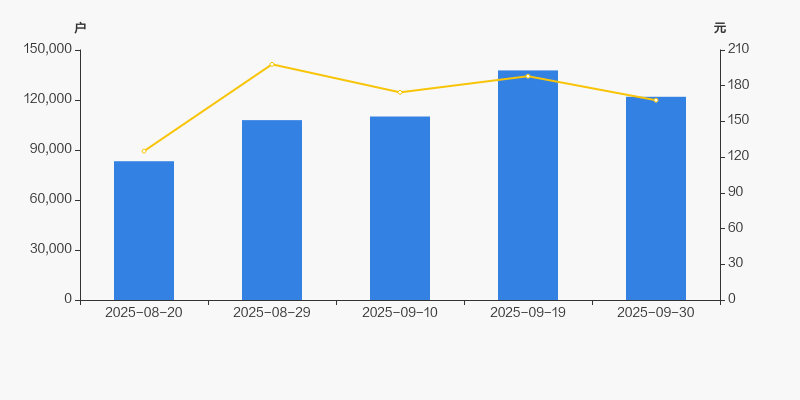 2025年8月20日至今,公司股东户数显著增长,区间涨幅为46.43%。2025年8月20日至2025年9月30日区间股价上涨34.16%。
