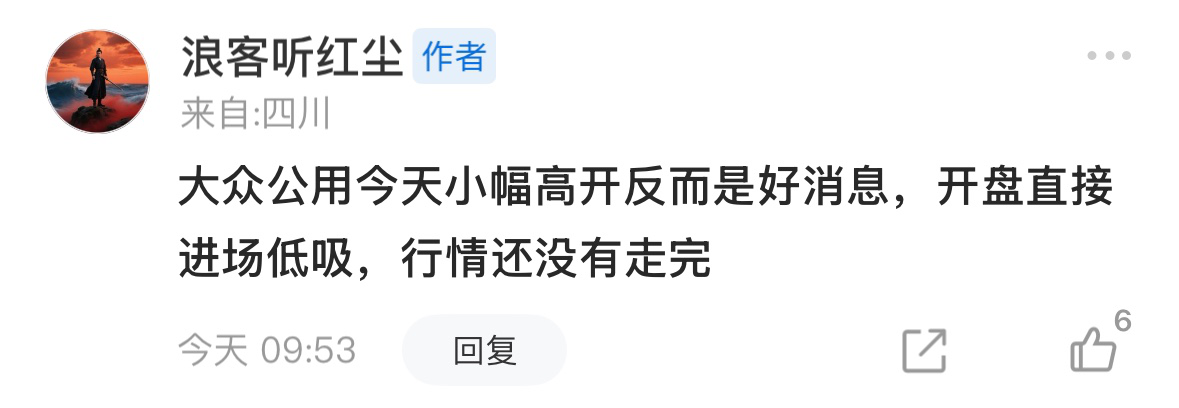 $大众公用(SH600635)$:公司是上海本地公用事业龙头,业务覆盖燃气、污水处理,叠加创投板块布局,具备稳定现金流与成长预期。上周五冲高回落,它也是在经历了连续的调整后企稳,所以接下来的行情还是继续看涨为主,今天5日线是不能跌破的,因为刚刚站上,一旦瞬间跌破就说明行情还没有真正走好,一旦跌破马上离场,反弹则可以选择继续格局。