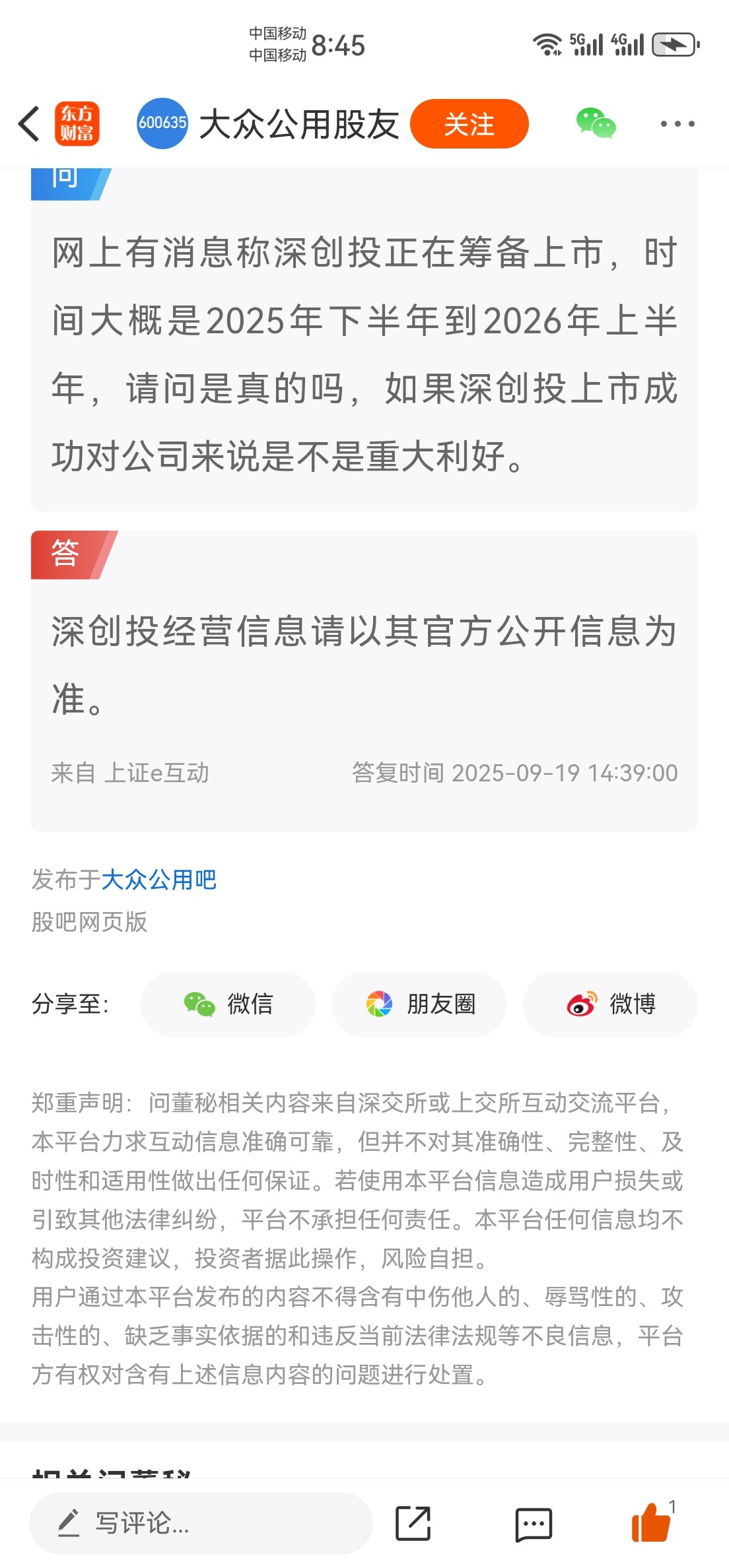 网上有消息称深创投正在筹备上市,时间大概是2025年下半年到2026年上半年,请问是真的吗,如果深创投上市成功对公司来说是不是重大利好。答深创投经营信息请以其官方公开信息为准。来自上证e互动答复时间2025-09-19 14:39:00