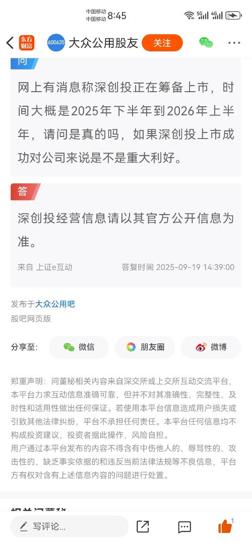 (来自 上证e互动)  答复时间 2025-09-19 14:39:00