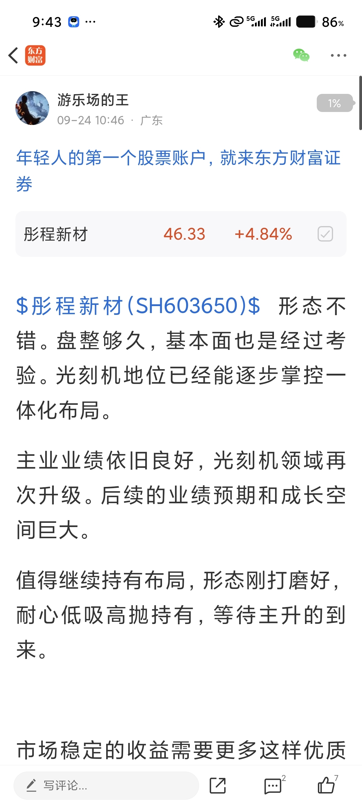 不是没给过你们抄作业的机会啊。9.24给帖子后,今天再次新高突破,本身就已经在主升路上了。 我说了很多次,有时候不是公司不行,而且资金趋势问题,等低空和军工领域全面回暖,九州自然会拔地而起。