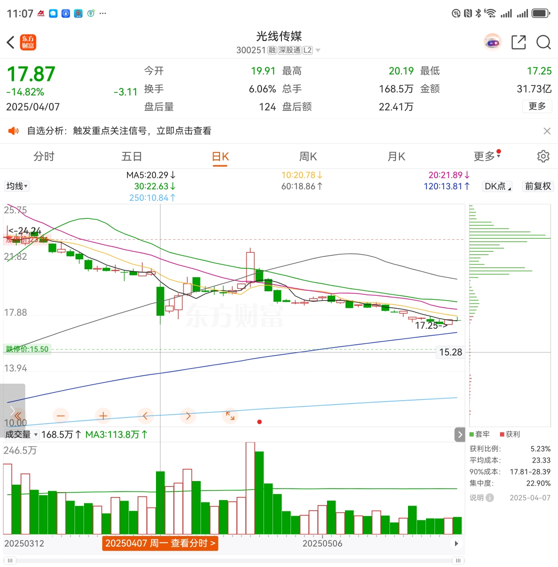起床一睁眼就暴击,影视板块集体扑街了。光线传媒放量大跌。这种跳空下跌动能很大,现