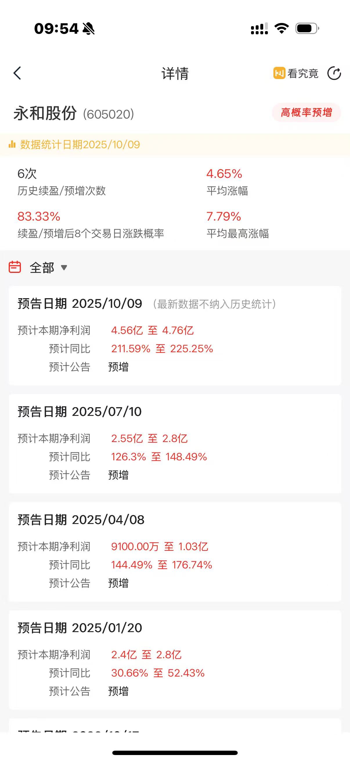永和股份今日发布预增,这票历史发生多次预增情况,此次预计净利润增长超4.56亿,