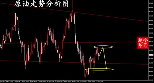 原油走势上行至62.40受阻下落,油价下穿均线系统,短线客观趋势呈转换趋势。MACD指标快慢线在零轴上方张口向下,空头动能逐步转强。但是还是在区间内。日内继续关注63-60的区间。