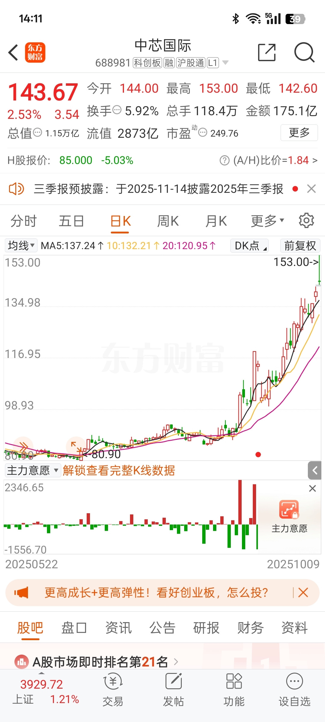 收盘前买今天创历史新高的热的板块强势股,明天冲高就可以获利了结,收益立竿见影!如果你不知道买什么股票,收盘前买入中芯国际688981,明天早盘冲高出货。