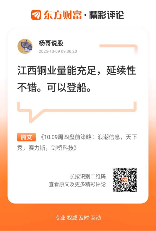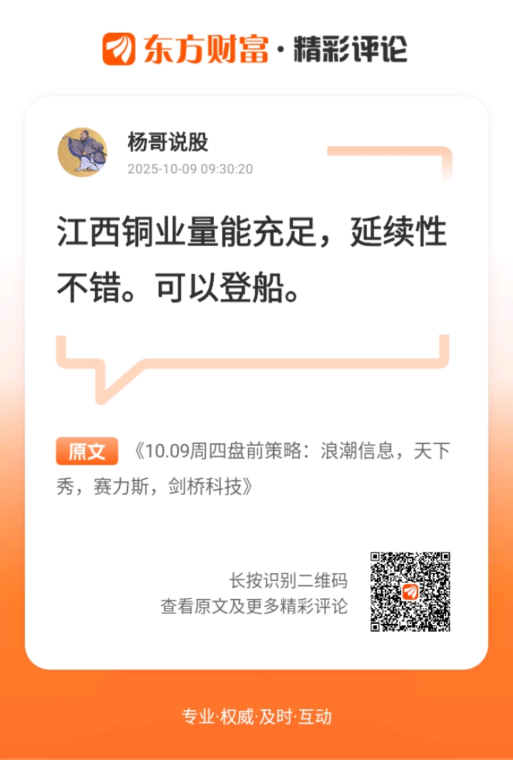 //@杨哥说股 :江西铜业量能充足,延续性不错。可以登船。