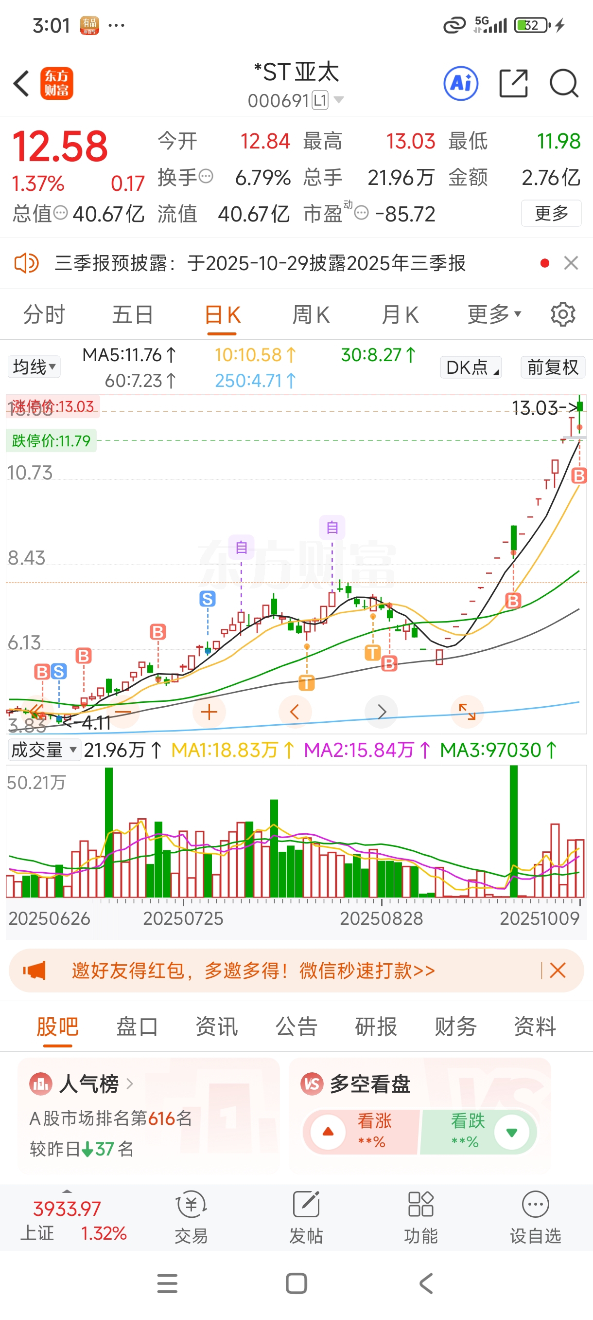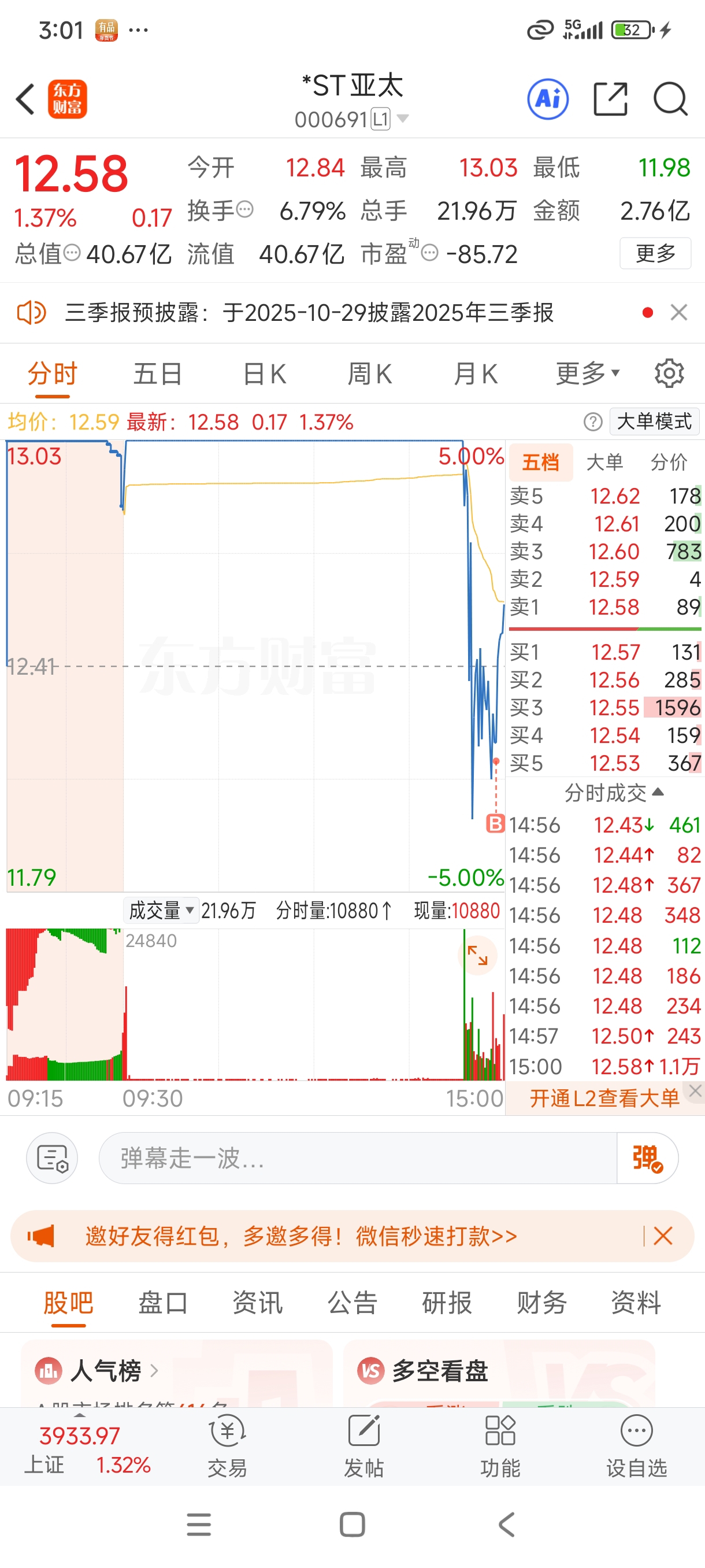ST亚振 ST宇顺盘中跌停对整个ST板块的负面情绪下杀,一路向下。后面打开跌停后,又修复了些。今天卖出的股友,估计又要捶足顿胸了。既然是龙头,就要有对待龙头的态度,如果随便绿一下就受不了(何况前期还有那么厚的利润垫),心态上还是要稳定一些,减少情绪带来的波动!
