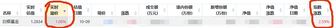 10月9日估值约+2.6%,场内溢价1个点左右,花了50买的这个估值网址还挺好盘