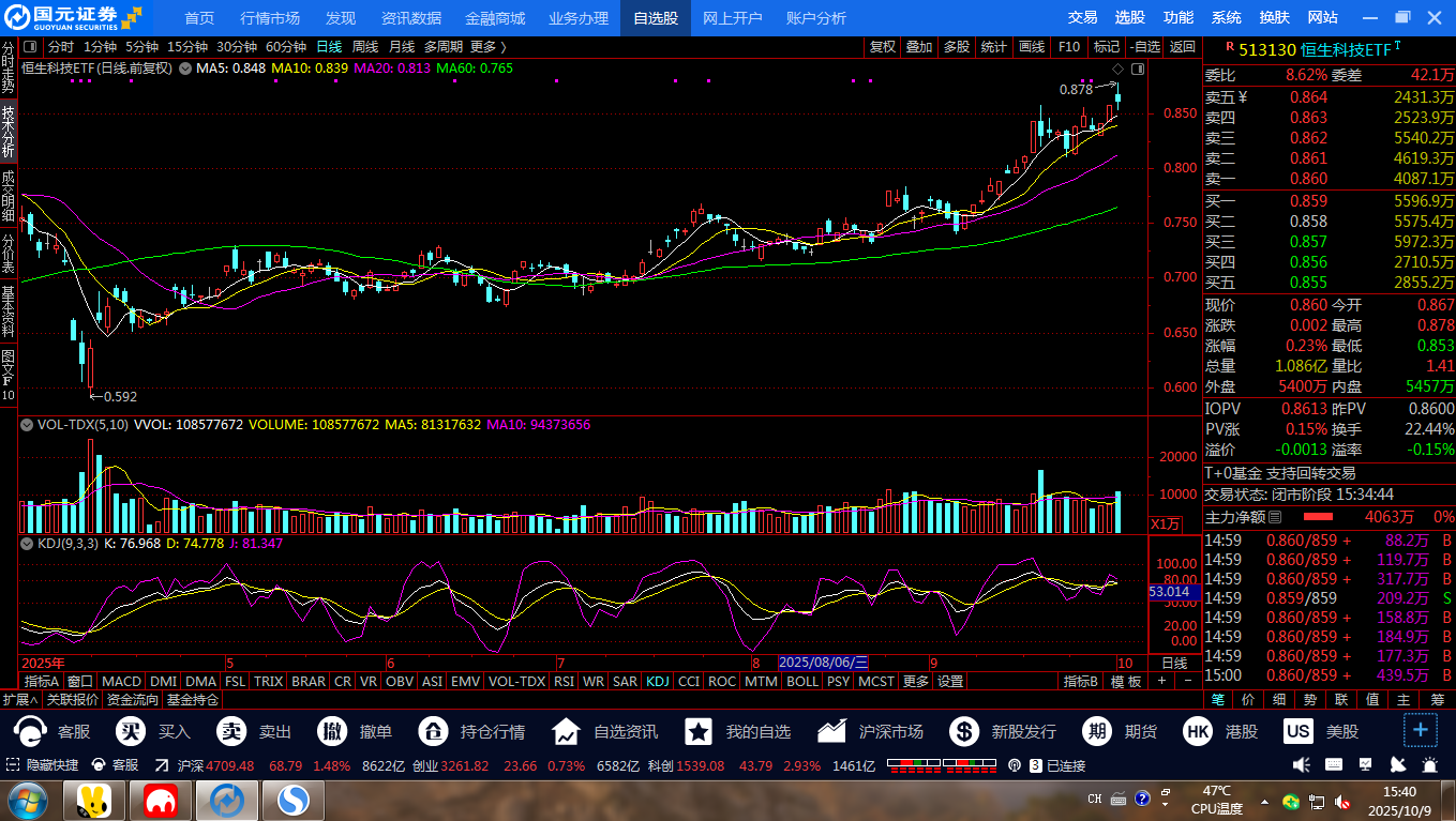 2025年10月9号建仓,底仓1844000股,成本价0.863元