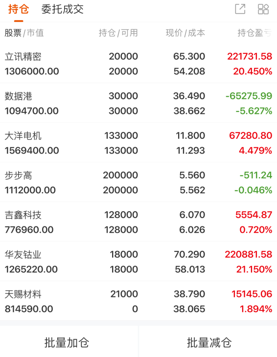 天赐材料002709:从今天的整体表现来看,还是可圈可点的,沟通双方存在一定的分歧,但目前的情况来看,股价仍然在上升的通道当中。而且从近期量能的变化来看,是呈现一个逐步放大的一个情况,所以对后续的整体表示现在来看还是比较乐观的。我们在早盘也是选择了做一个介入,期待后续能够继续走高。