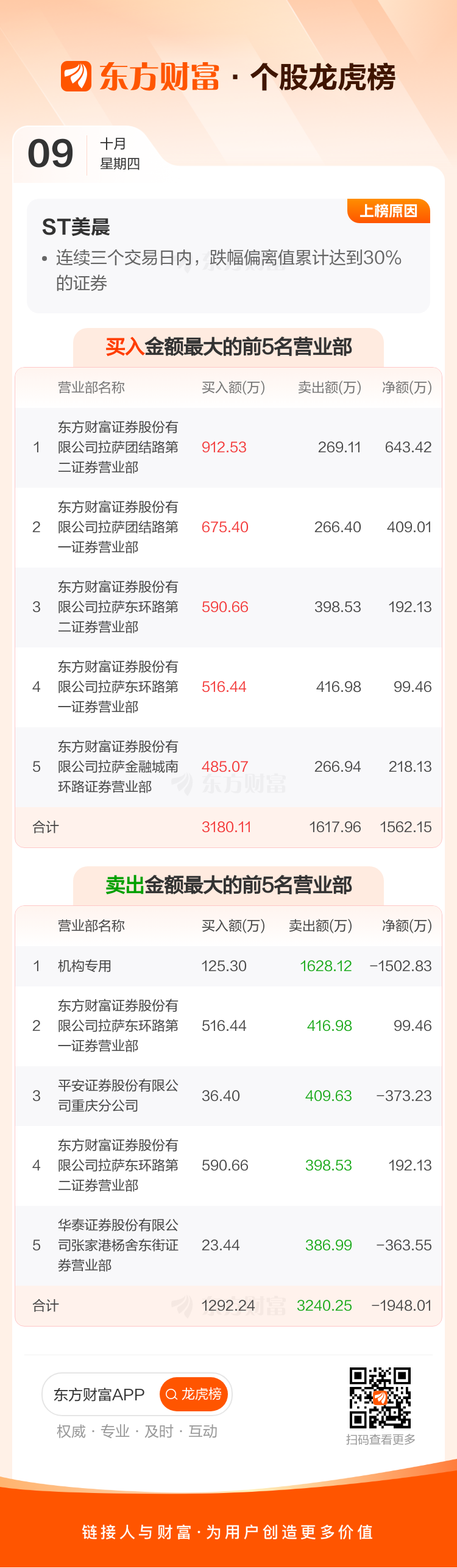 交易所2025年10月9日公布的交易公开信息显示,ST美晨因成为连续三个交易日内,跌幅偏离值累计达到30%的证券上榜。ST美晨当日收报2.22元,涨跌幅-13.95%,换手率16.17%,成交额5.22亿。异常期间9月30日至10月9日,期间涨幅-31.06%,累计偏离值-32.25%,区间成交额5.64亿。