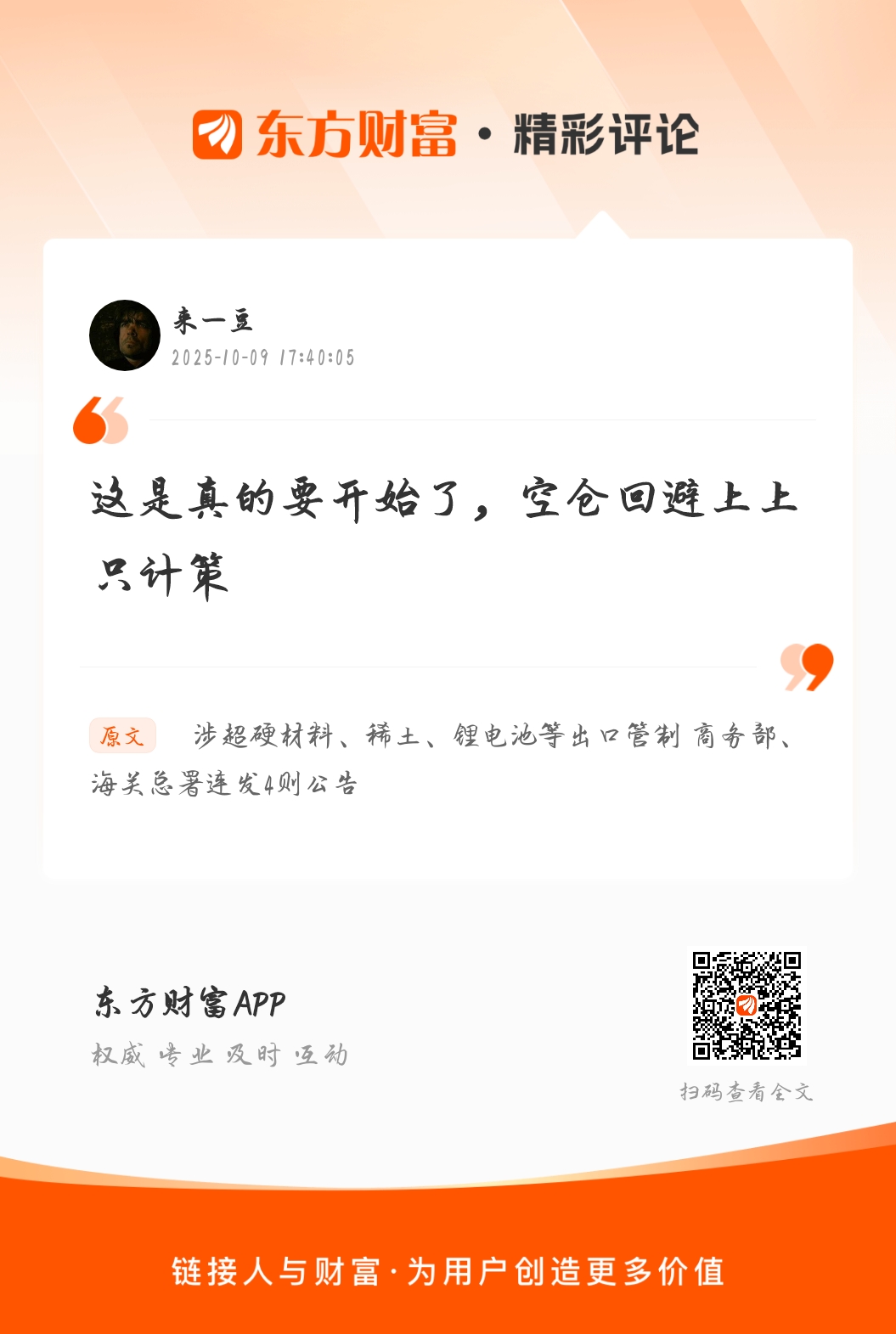 这是真的要开始了,空仓回避上上只计策 我在《涉超硬材料、稀土、锂电池等出口管制 商务部、海关总署连发4则公告》的评论获得了大家的关注。