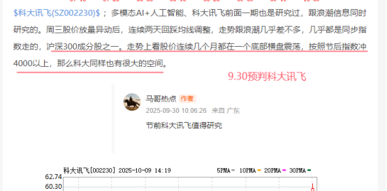 科大讯飞;人工智能+沪深300成分股、科大今天这个上涨大阳线走的比较踏实,早上开盘没有跳空也没有缺口,相对来说走的很稳定,沿着均线上涨是最舒服的模式。技术走势看已经突破前面平台高度了,而且今天也是放量上涨。当然这也跟指数有很大的关系,指数如果不起来,它可能同样趴在继续横盘,既然起来了那就继续看好后市。持股上考虑继续等指数的上涨空间零界值在哪里。到底是4000,还是5000现在还看不出来就现在来说先过了4200再说后面的吧。