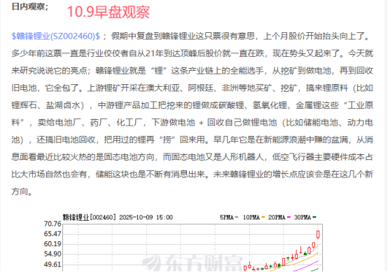 $赣锋锂业(SZ002460)$;固态电池、锂资源储能+沪深300成分股、假期中认真复盘了的人运气都不会太差,赣锋锂业是昨天选出唯一一只把握大的票,今天开盘直接跳空高开缺口,技术走势来说是符合的,一般走加速的票开盘跳空都是有人为的因素影响。这肯定不是散的作为,当然跳空缺口一般都有两种可能性,一种是真正上涨的同时叠加了利好加持人气(筹码集中)快速聚集合力拉伸,另一种就是跳空冲高回落承接不好,容易出现抛压,这两种都是看涨走势,但在这个层面也要分一个强弱。赣锋锂业今天这个就属于强者,固态电池跟储能有利好消息加持,技术上也走出跳空符合人气聚集合力所以今天能放量涨停。操作上,上午第一波分时黄线分歧就是最好的操作点明天需要观察开盘的强弱,趋势上看肯定是没有问题的,赣锋锂业今天的这个涨停就是在跟上证指数共振的(沪深300成分股)。