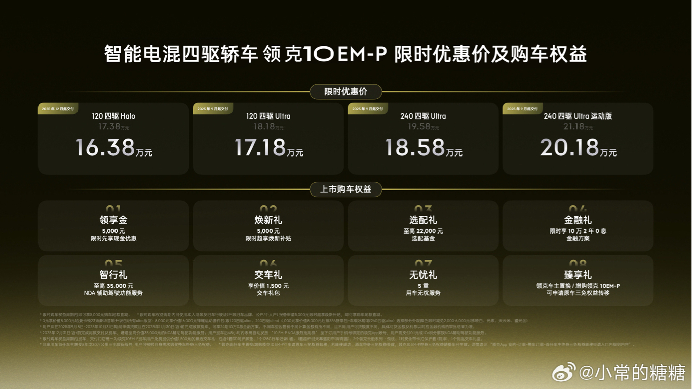 价格公布的时候,确实惊到我了16.38万,领克10EM-P的正式起售价反正我是没有想到的。毕竟原来预售价是19.2万起,想着正式售价能便宜个1万差不多了,没想到直接少了差不多3万,不知道大家怎么看领克这回的定价?#领克10EM-P##价格权益#