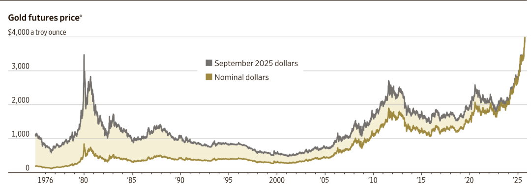 是的,你没看错。黄金,这个人类文明几千年的终极硬通货,历史上首次冲破了每金衡盎司4000美元的大关!