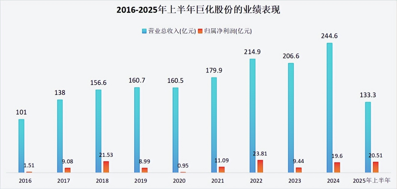 2025年半年报显示,巨化股份的营收和净利润分别实现133.3亿元、20.51亿元,同比增速达到10.36%、146.97%。