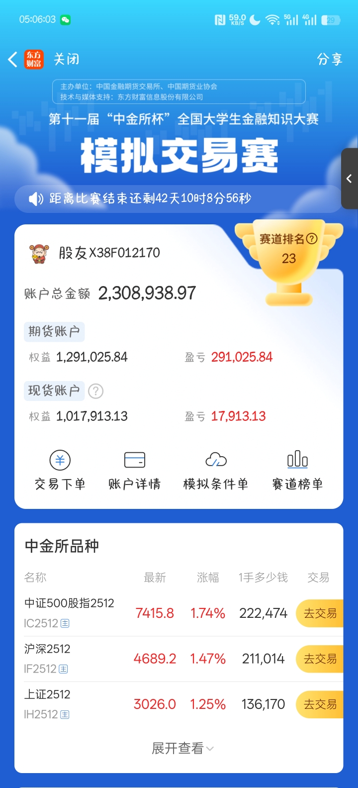 #中金所杯-模拟交易赛道# 纯小白干到23名#炒股日记#
