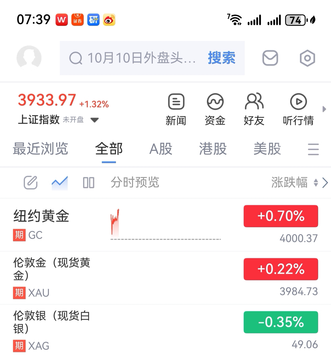 在今天早上7点39分,观察现货黄金是涨+0.22%