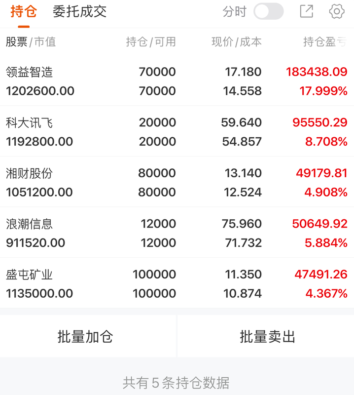 $湘财股份(SH600095)$:券商概念股,布局该股是看中它在券商板块里的补涨潜力。现在市场成交量持续放大,科技主线火热,券商作为行情的放大器,轮动预期正在升温。作为区域性券商中的活跃分子,它有足够的弹性。耐心一点,等风来,继续格局。