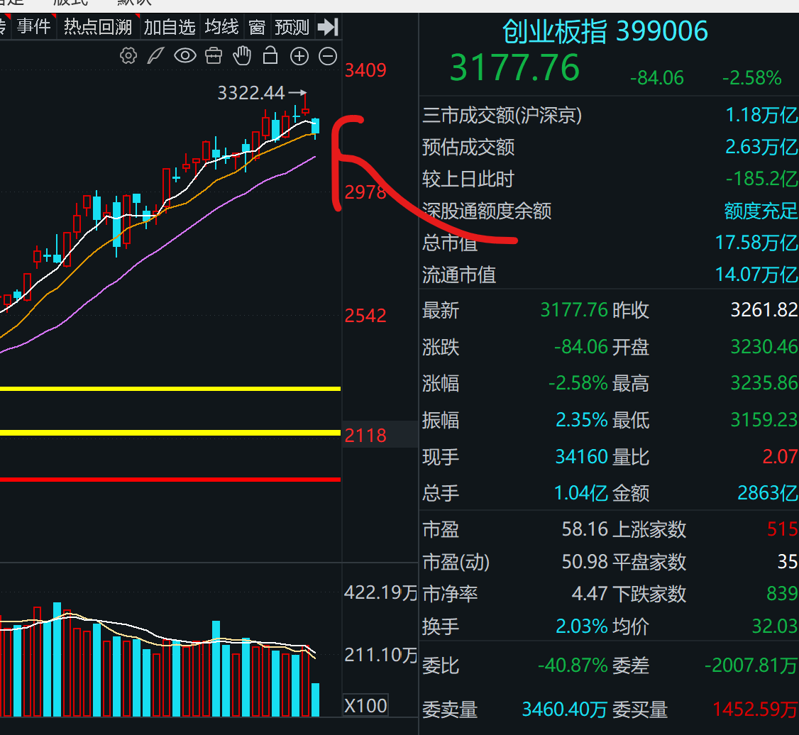 创业板跌破5均,跟随策略做创业板ETF的根据均线要考虑收缩下仓位,这部分减的仓位