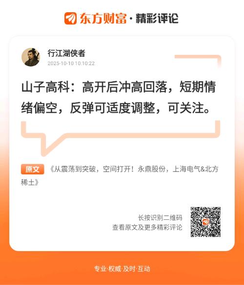 今天方向没跑偏,老师提醒起到大作用。//@行江湖侠者 :山子高科:高开后冲高回落,短期情绪偏空,反弹可适度调整,可关注。