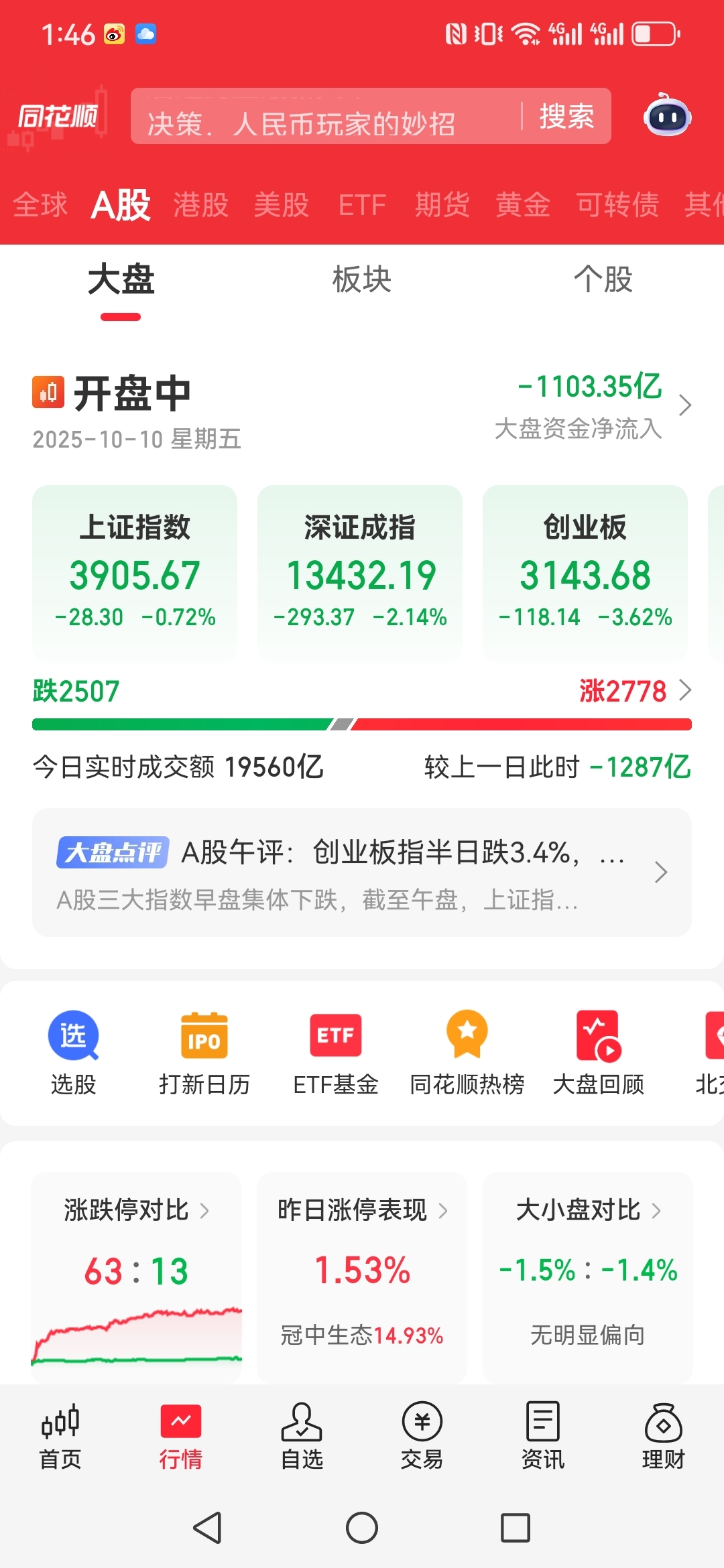 #炒股日记# #股市怎么看# #强势机会# 今日市场没什么热点,市场赚钱效应不明显,目前指数均在回调中。