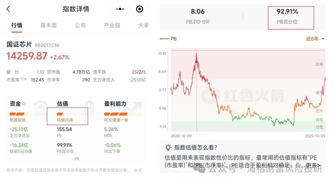 更多的原因,还是芯片股估值高了。我用红色火箭查了一下,芯片行业的估值过高,即使不看PE, 只看市净率,现在的估值也在过去5年的92%分位。