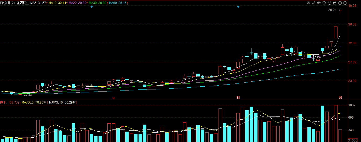 江西铜业600362:该股昨天已经拿下两连板,整体趋势非常强劲。目前,铜矿供应持续紧缺的逻辑正在市场上发酵。作为直接受益的龙头企业,该股有望继续向上扩展空间,继续股价