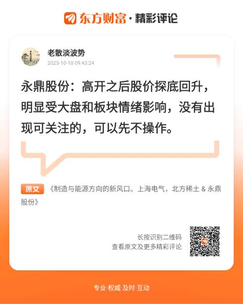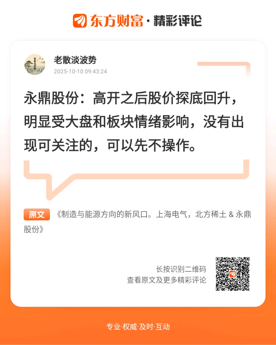 感谢你嘅意见,我会注意返。//@老散淡波势 :永鼎股份:高开之后股价探底回升,明显受大盘和板块情绪影响,没有出现可关注的,可以先不操作。