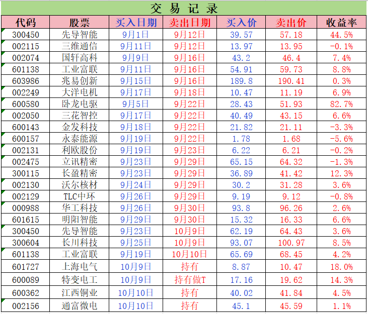 北方稀土,10 月 9 日盘中有个重要消息,商务部公告称,经批准后,要对稀土相关技术等物项实施出口管制。北方稀土作为轻稀土领域的龙头,稀土相关业务营收占比接近 70%。它的业务涵盖稀土盐类、氧化物、金属这些原料,还有磁性材料、抛光材料等功能材料,甚至连镍氢动力电池、稀土永磁电机这类终端产品也在做,妥妥的全产业链布局,实力非常雄厚。不过北方稀土前面已经涨了近 2 倍,这一波上涨主要是受消息刺激影响。今天大盘行情不好,北方稀土也受到影响,一开盘就表现疲软,所以就放弃建仓了,没必要在行情差的时候硬上。