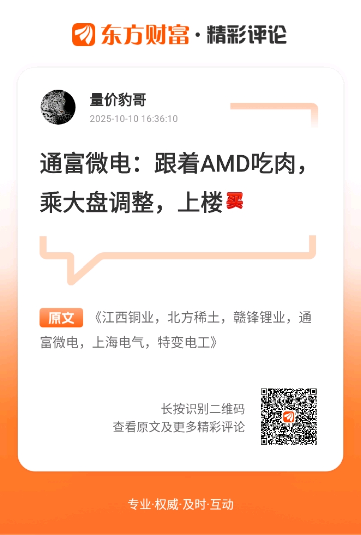 //@量价豹哥 :通富微电:跟着AMD吃肉,乘大盘调整,上楼
