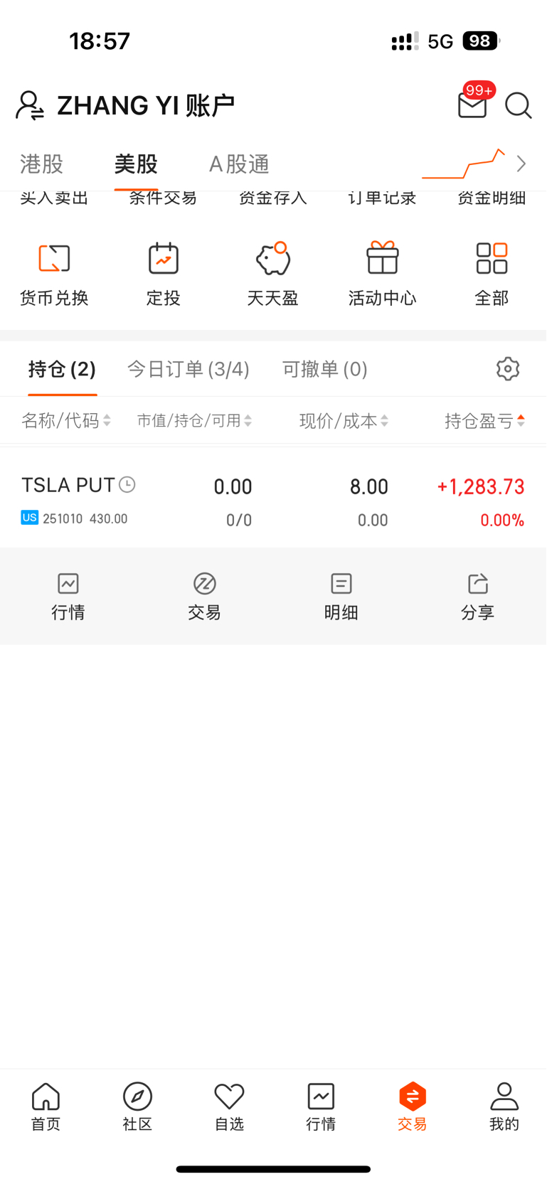 #炒股日记# 今天错过了4倍的期权,挣了1283美金就跑了,昨天的亏损让我今天头脑有点晕,变得不理智了。